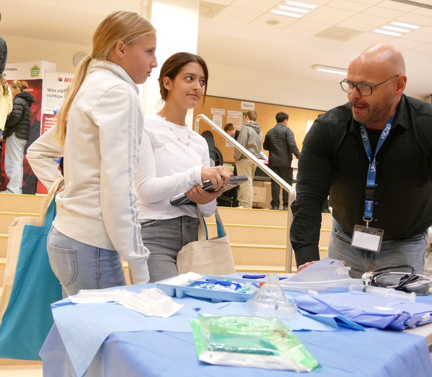 Krankenhäusern und sozialen Einrichtungen. An den meisten Ständen kam es zu direkten Gesprächen von Schülerinnen und Schülern mit Auszubildenden, die von den Unternehmen mitgebracht wurden.
