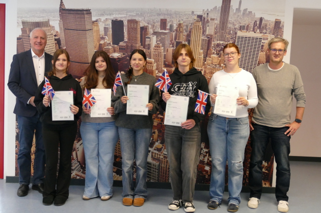 „Bereits zum zweiten Mal leite ich diese AG und es freut mich ganz besonders, dass einige Schülerinnen sogar die C1-Prüfung gewagt haben. Es war früh zu erkennen, dass alle drei das Potential dazu hatten“. Gemeint sind damit Paula Nadler, Emily Nadler und Emi Merkl, die mit dem C1-Zertifikat ab sofort die offizielle Berechtigung haben, an einer englischsprachigen Universität im Ausland zu studieren. Ebenso hervorzuheben ist die Leistung von Emi Merkl, die im Bereich des Leseverstehens sogar das Niveau einer Muttersprachlerin (C2) erreicht hat.