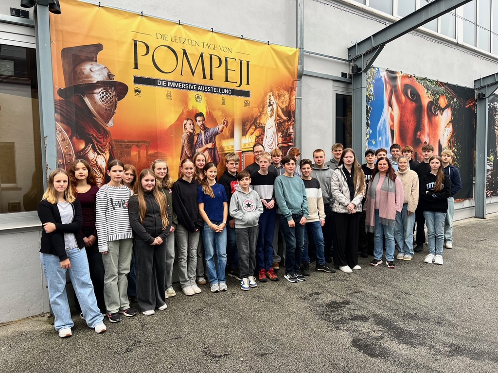 Im November besuchten die Lateinkurse der Jahrgänge 7 bis 10 die Ausstellung „Die letzten Tage von Pompeji“ in Frankfurt. Diese eindrucksvolle, multisensorische Schau bot den Schülerinnen und Schülern die Möglichkeit, die antike Welt auf außergewöhnlich lebendige Weise zu