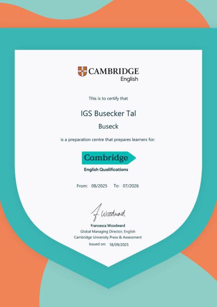 Die IGS Busecker Tal darf sich Cambridge Preparation Centre nennen – eine Auszeichnung, die das besondere Engagement der Schule für die Förderung von Englischlernenden