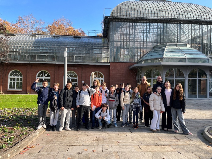 Im November 2025 sind wir, die Klasse 6F, mit dem Zug und dem Bus nach Frankfurt zum Palmengarten gefahren. Der Guide, Herr Stefan Lutz, hat uns durch den Garten geführt und uns die Pflanzen gezeigt. Der Palmengarten ist schon über 150 Jahre alt und einer der schönsten und größten botanischen Gärten Deutschlands. Wir sind dann in das große Tropenhaus gegangen. Dort war es sehr warm und feucht, fast wie im Regenwald. Wir haben riesige Palmen, bunte Orchideen und Kakaopflanzen gesehen. Besonders spannend war, dass wir eine echte Kakaobohne probieren durften. Sie hat ganz anders geschmeckt als Schokolade, nämlich etwas bitter und fruchtig. Wir haben gelernt, dass Kakao ursprünglich aus Südamerika kommt und dass Vanille eigentlich aus einer Orchideenart gewonnen wird. Ich wusste gar nicht, dass manche Pflanzen nur in tropischen Ländern wachsen können.