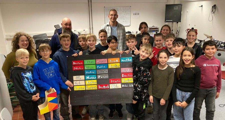 Die Klasse 5a möchte sich herzlich bei Herrn Havemann bedanken. Gemeinsam mit ihrer Klassenlehrerin hat die Klasse ein Lied gesungen, um ihre Wertschätzung auszudrücken. „Wir sind die Klasse 5a und haben ein Lied gesungen, weil Herr Havemann uns einen Stundenplan aus Holz gemacht hat und Organizer gebaut hat“, erklären Zoey und Leni. Herr Havemann hat der 5a – und auch vielen weiteren Klassen an unserer Schule – große Dienste geleistet. Angefangen hat alles mit dem Bau der Holz-Organizer, die für mehr Ordnung im Regal sorgen. Anschließend folgte der individuell gestaltete Stundenplan aus Holz, der ein echtes Unikat ist und im Klassenraum der 5a einen besonderen Platz bekommen hat.