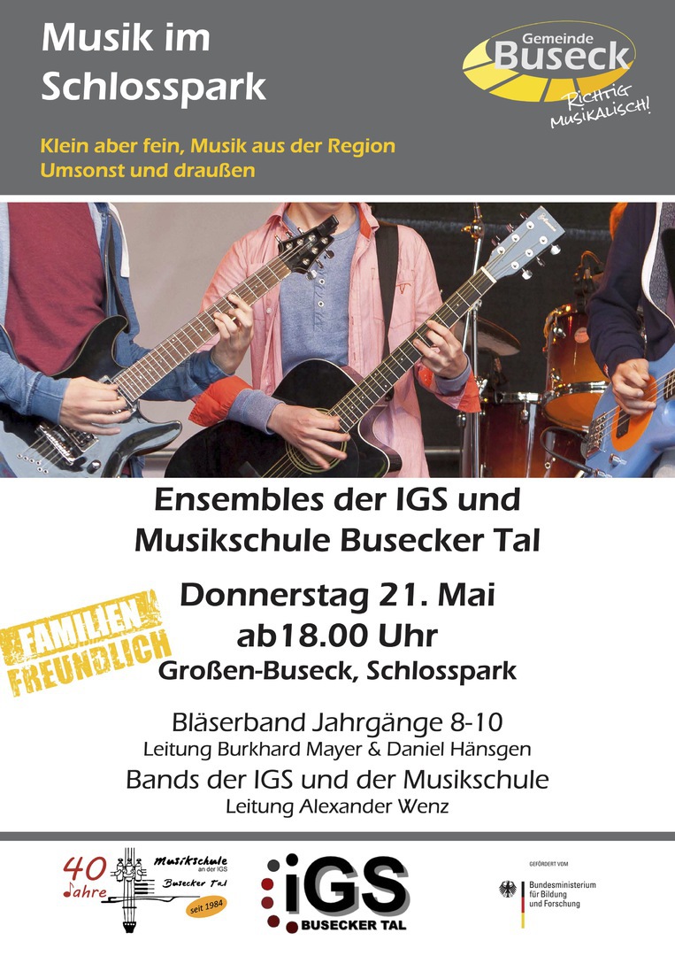 Veranstalter: IGS Busecker Tal in Kooperation mit: Förderverein der IGS Busecker Tal, Jugendpflegen der Gemeinden Buseck, Fernwald und Reiskirchen sowie der Jugendförderung des Landkreises Gießen